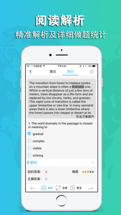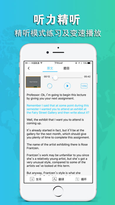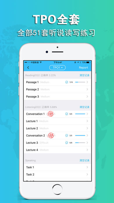 美利托福s版是一款旨在模拟托福考试的,让您可以佩戴耳机轻松聆听英语,随时随地用手机查阅学习资料,既方便又省心,为考生提供了轻松备考托福的良机。