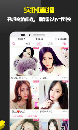 潮流前沿的视频直播APP,万人同屏在线,交友热舞秀场,聚集了众多俊男靓女为你倾情演绎!