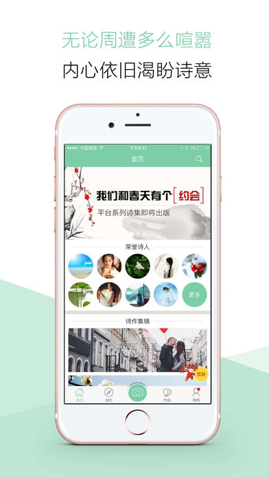 上传你的美图;你可以凭借自身的魅力打动诗人,也可以通过馈赠钻石的方式吸引他们——为你写诗;美图与美诗成一幅完美的作品;将其分享至各大平台,成为你最美好的记忆⋯⋯