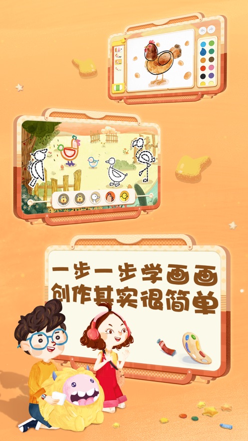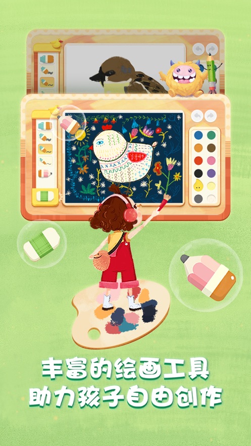创意画板的绘画工具种类繁多,绘画主题难度逐步增加,让孩子轻松入门、上手。