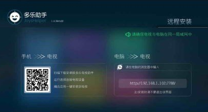 该应用有两种操作方法,一种是通过手机端扫描二维码下载“多乐电视助手”,然后在手机端应用中选择连接电视设备,在连接成功后,您就可以在手机端推送安装应用。