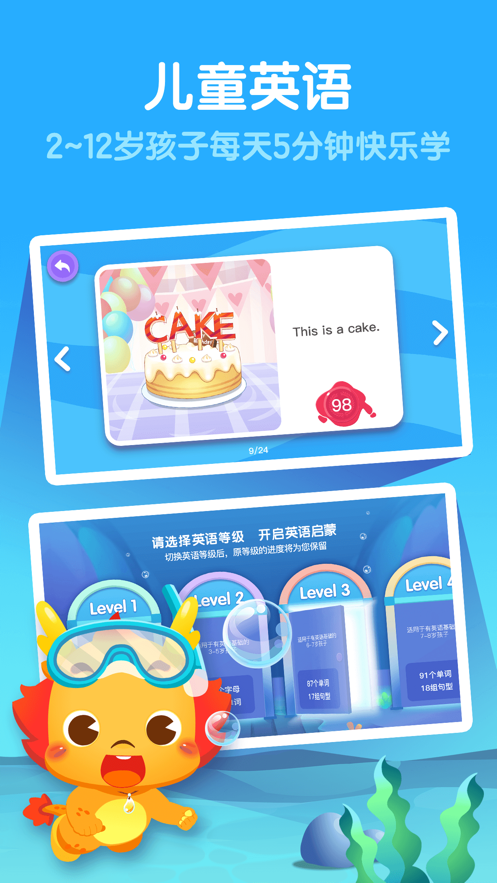 小伴龙英语——专为儿童而生,打造分龄英语学习平台,紧密结合幼小阶段的英语内容,以丰富的教辅资源为孩子们提供支持,激发他们对英语学习的热情,助力他们爱上这门语言。
