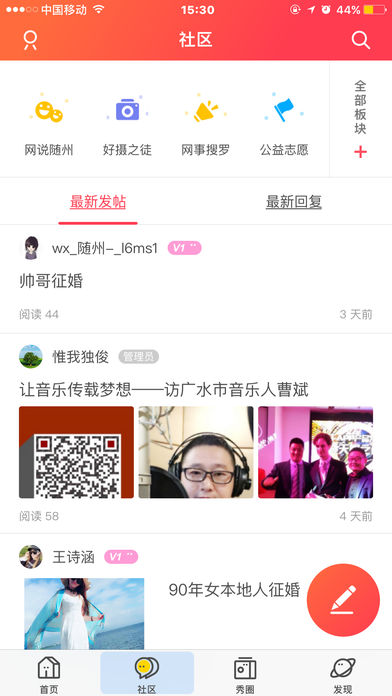 1、首页全新改版,丰富内容强势来袭!展示社区动态、分享圈和视频的热门资讯。