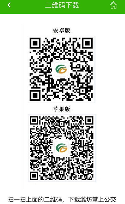 “潍坊掌上公交”手机APP的下载方式也极为,您只需扫描“潍坊掌上公交”二维码,或在Android系统登录百度商店,iOS系统登录APP Store搜索“潍坊掌上公交”,下载并安装,即可尽享公交智能化所带来的优质出行体验。