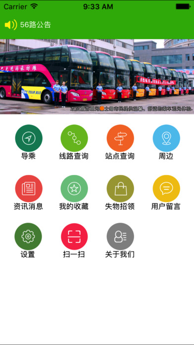该APP的“导乘”功能能够为您提供多种出行方案,乘客只需输入或点击地图选择起点和终点,系统便会为您呈现三种出行方案:快捷、少换乘、少步行,以节省您的出行时间,提升出行效率;线路查询功能则可提供所查线路的站序、票价、运营时间、车辆到离站情况及线路公告等信息,线路走向和经过站点、车辆位置均可在上直观显示;乘客亦可根据需要设置到站提醒,收藏线路等便捷操作;通过站点查询功能,输入某特定站点,系统将为您提供经过该站点的所有公交线路供您选择;周边快查功能则能迅速提供2500米范围内公交站、加油站、美食、住宿等的查询结果;资讯消息在主界面以公告形式清晰展示,方便乘客及时获取公交出行信息。