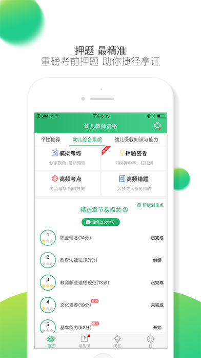 iPhone手机版下载,这是一款功能强大的!其简约的桌面设计,结合智能化的学习考试题库,汇聚了资深名师的公开直播课程、高品质的精编题目、有趣的任务通关答题、更为精准的密卷押题及实时答疑社区等诸多功能。感兴趣的朋友们,快来下载体验吧!