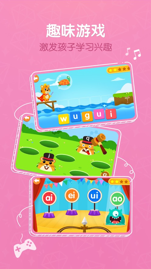 认:通过游戏场景结合标准发音,帮助儿童认识拼音的形声配对!