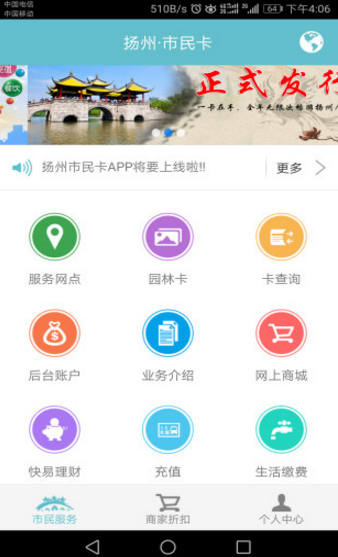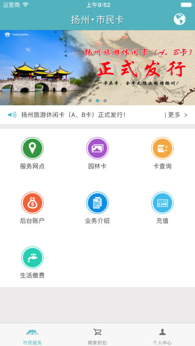 (4)为用户提供最新的商户优惠折扣、扬州市民卡资讯以及无锡等信息;