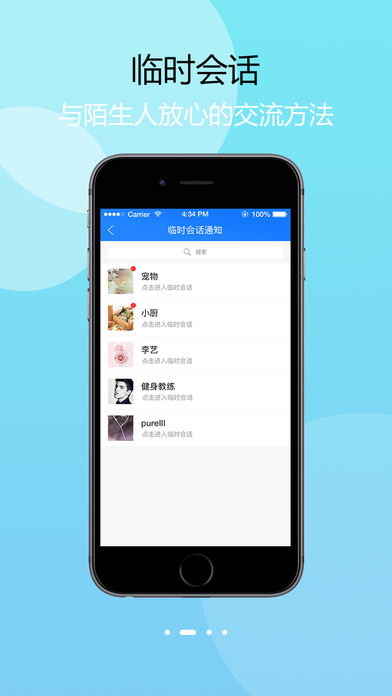 非好友临时会话:无需添加好友即可便捷沟通,为招聘、招标、征婚等群体提供无后顾之忧的交流方式,保持适当的距离,安心与陌生人交谈。