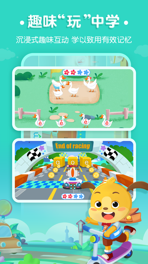 为拼音字母创意定制的拼音儿歌,帮助小朋友们在朗朗上口中巩固所学,鼓励他们自信地表达。
