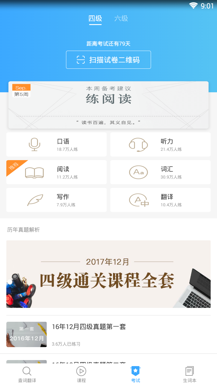 真题听力,尽情练习历年英语四六级真题听力,随心所欲!