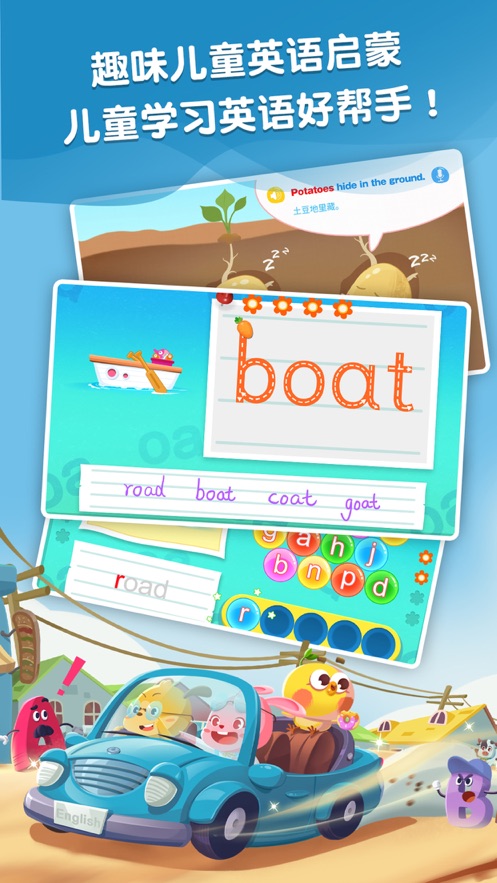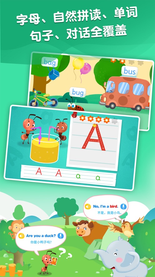 纯正的美式童声发音,场景化教学,贴近儿童生活!快乐地开启儿童英语之旅,轻松学习练习、字母书写与单词拼读。