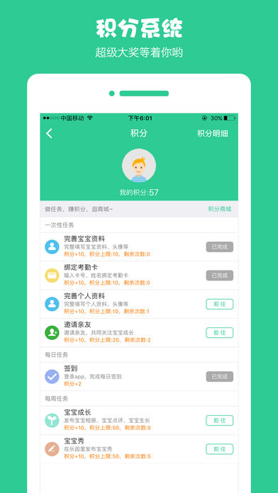 3.用于家长与幼儿园之间的信息互动与沟通,亲友共同关注宝贝的成长,宝贝综合成长档案:考勤记录、发育情况、点评反馈、相册分享、任务安排。