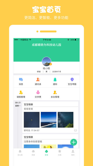护宝贝软件官方苹果手机版是一款融合家园互动、考勤管理、管理、园务管理与信息管理于一体的信息化管理平台,旨在帮助家长更全面地了解孩子的学习状况,让您体验到别具一格的教育方式。对这一切感兴趣的用户,欢迎尽快下载体验。