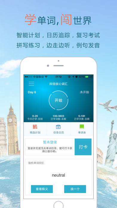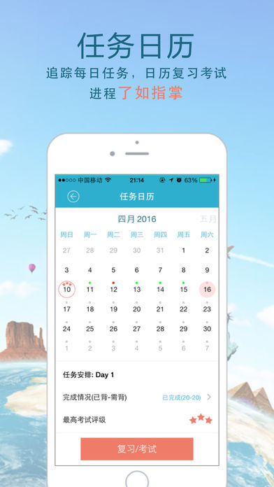 每日单词任务考试,星级评定,让您清晰了解单词掌握的程度。