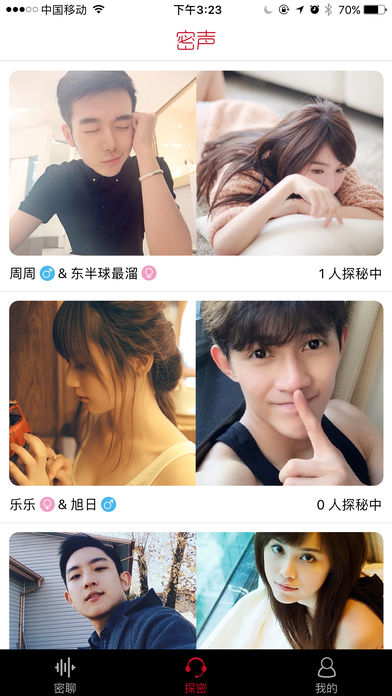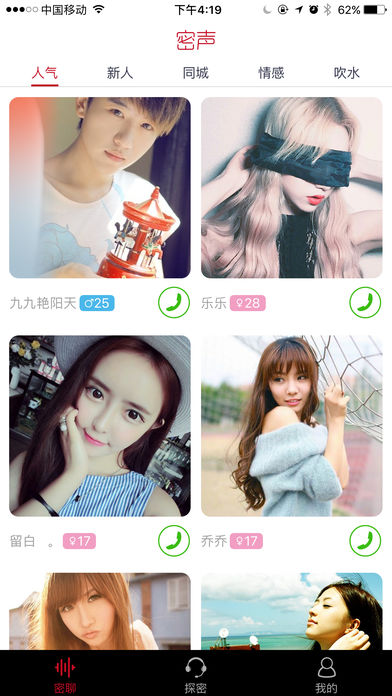 用声音释放你的秘密,在这里你可以找陌生异性,用声音拉近彼此,让心更靠近。