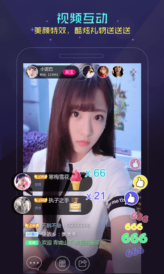 体验流畅:高清的直播画面,实时的聊天,绚丽的礼物动效,私聊的悄悄话。