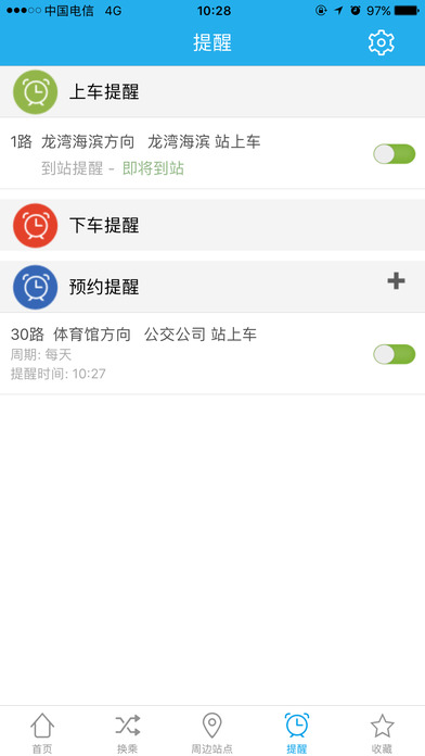 当公交车辆即将到站时,系统会通过响铃或震动的方式进行提醒,帮助您避免错过车次或坐过站的尴尬。
