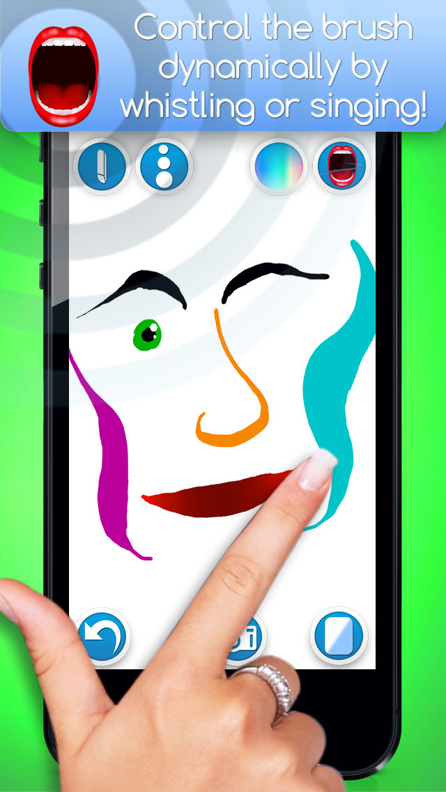 在您绘画的过程中,通过歌唱或吹口哨,轻松调动音量,观看笔刷随着声音的大小而变化,展现出浓淡的奇妙。
