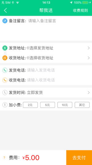 选择跑腿类型,创建新订单并进行完善,发布订单;