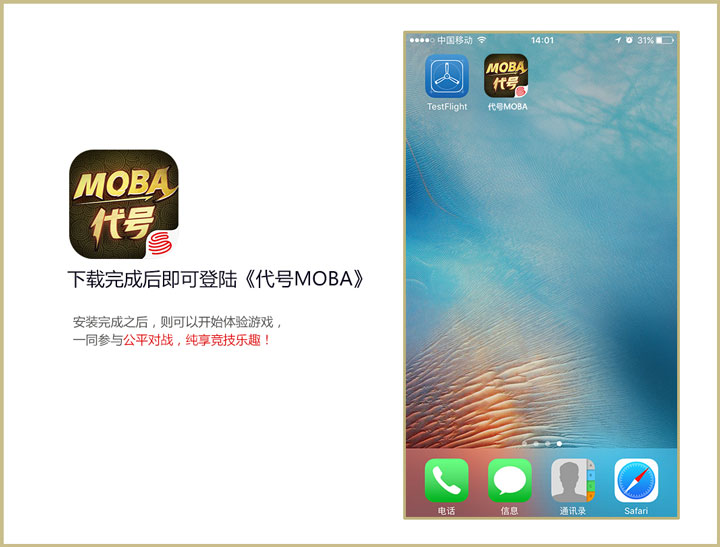 苹果版代号的测试版本现已通过TestFlight软件提供下载,苹果用户需先行下载TestFlight,并凭借官方提供的激活码进行安装,便可畅玩代号MOBA的测试版。快来体验吧!