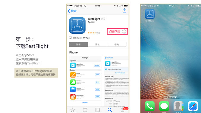 注:请确保您的TestFlight软件已更新至最新版本,您可以在苹果进行更新。