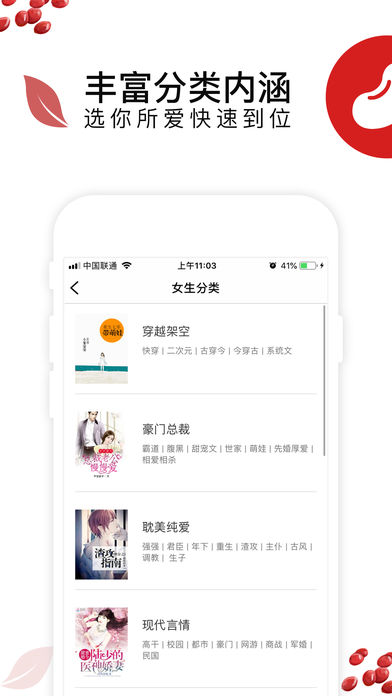 红豆小说书苑是一款免费,汇聚华语网络经典与流行小说,藏书丰富,并对所有书籍进行了细致分类,您心仪的小说,在此皆可寻得。涵盖精品完本与在线连载小说,实时更新,随时阅读;更有免网络流量的功能,尽享阅读乐趣;