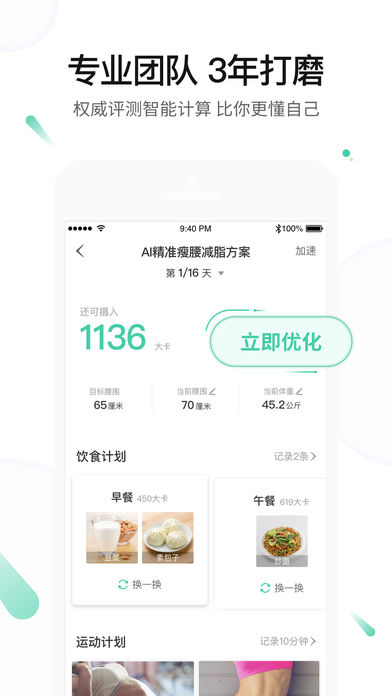 减约APP基于独创的CM专业减脂理论体系,将饮食与运动有机结合;同时运用AI技术,精准计算、分析海量数据并进行智能优化,不断为用户提供科学、个性化的定制方案。