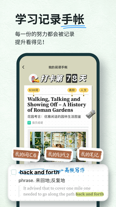 扇贝阅读不仅仅是一款“学英语”的软件,更是一个助您迈向“用英语学习”的平台。