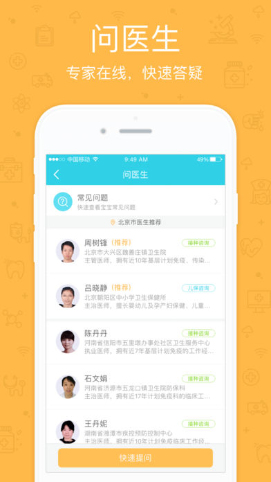 1、问医生:专业儿保与计免医生在线解答各类疫苗及育儿困惑