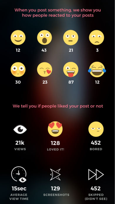 其独特之处在于能够运用面部识别技术与手机摄像头,自动捕捉用户在社交平台上浏览朋友分享的照片、、视频等信息时,所流露的真实表情。