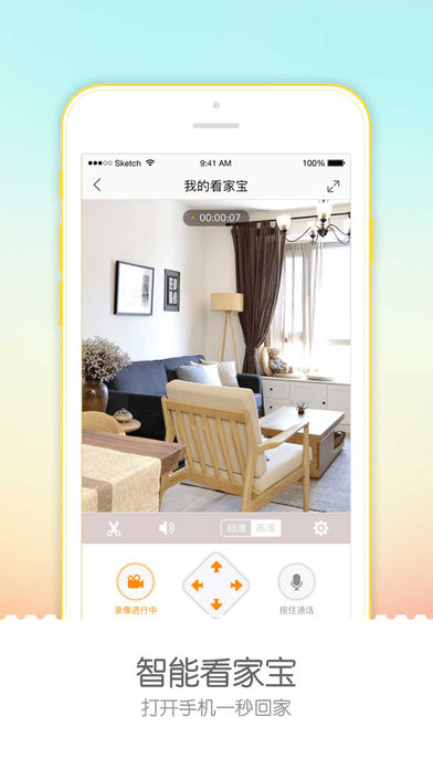 5.【看家宝】通过手机与嗖嗖看家宝连接,随时随地了解家中的动态,并内置通话功能。