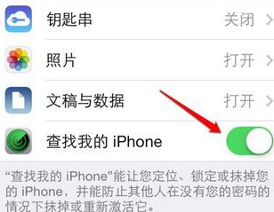 2、继续向下,选择“查找我的iPhone”选项,开启此功能。“激活锁定”将自动启用,若设备丢失或被盗,激活锁定可防止他人使用或出售您的设备。