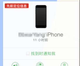 在此情况下,用户可在页面中选择当前离线的iPhone设备,并勾选【找到时通知我】选项,如图所示。