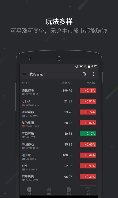 微牛投资专为国内外投资者精心设计,是一款极简的。它由小米与顺为资本共同注资,是小米生态链中的重要一员。该软件实时提供国内、美股、等全球主流市场的行情信息,开户流程简便,佣金低至惊人,支持融资融券,助您轻松掌握美股与港股投资,是一款上手极其简单的理财应用。