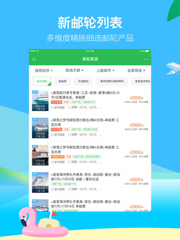 【新版邮轮列表】为您提供更贴合邮轮特色的筛选维度,助您精心挑选心仪的邮轮线路。