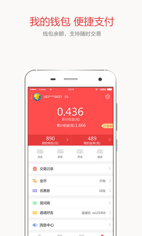 4. 具备线下门店支持,可进行提金与存金,年长用户可在门店刷卡购金。