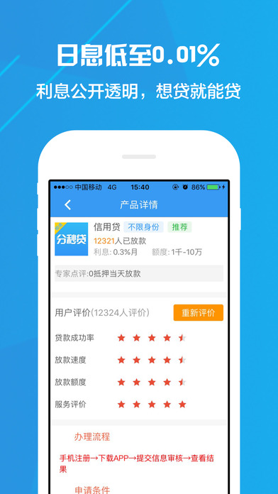 小编简评:超好用的纯线上信用无抵押贷款平台。