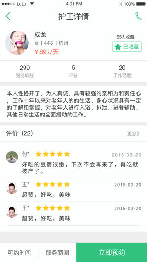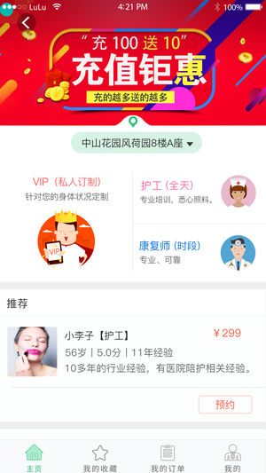 智能居家护理模块:用户可根据需要选择全天护工或时段康复师,养你一辈子平台的护理人员将在约定时间抵达指定地点,为老年人提供所需的专业服务。服务结束后,用户可对服务质量进行评价,此模块旨在满足居家老年人的生理与心理陪伴需求。