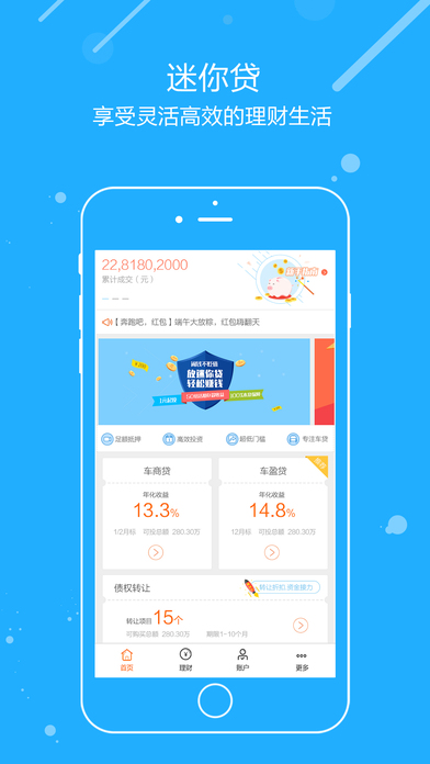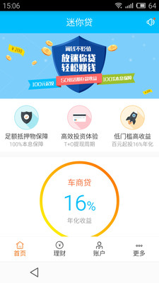 迷你贷app手机版是一款互联网金融手机应用,旨在为有资金需求及理财需求的个人与中小企业搭建一个规范、安全、高效、诚信、专业的互联网金融服务平台。