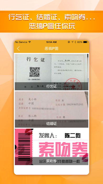 - 行乞证、贫困证、证等各类恶搞证件一键生成,乐趣无穷;