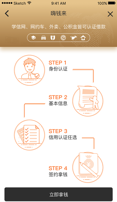 1、登录嗨钱网app—选择贷款—低息贷款—获取资金—嗨钱来;
