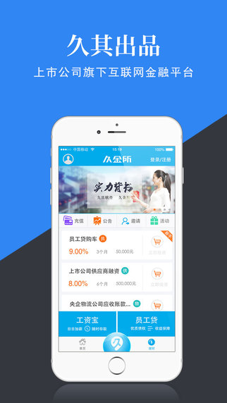 久金所的主营业务为:为签约合作企业的员工提供小额信用相关的金融服务,以助力企业员工解决短期资金周转之困。同时,久金所亦为中小企业提供基于抵押、资质评估及智能化云授信模式的短期经营性贷款。作为上市公司旗下“安全、规范、专业”的金融信息服务平台,久金所发布精选优质的债权投资项目信息,为投资者提供P2P投资服务。