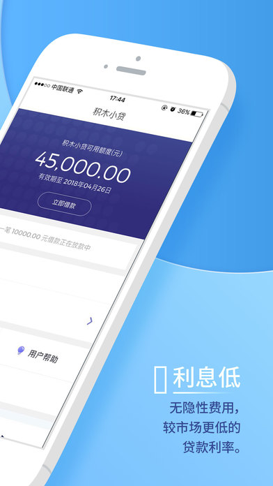 苹果版应用程序现已上线,在线申请贷款的过程轻松便捷!这是一款极其方便的贷款软件,无需四处借贷!积木小贷所提供的贷款额度相当可观,专为解决您的燃眉之急而生!快来下载体验吧!