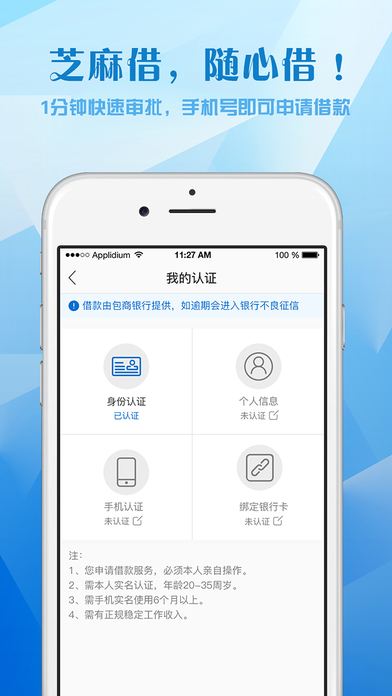 芝麻借官方iPhone手机版是一款极为便捷的手机借款应用,致力于以专业的风控体系为核心,以“安全、高效、快捷”为宗旨,为用户提供更加安心的借贷体验。全自动审核仅需5分钟,极速放款更是只需1分钟,申请流程简便无比,诚邀有需要的用户前来下载体验。