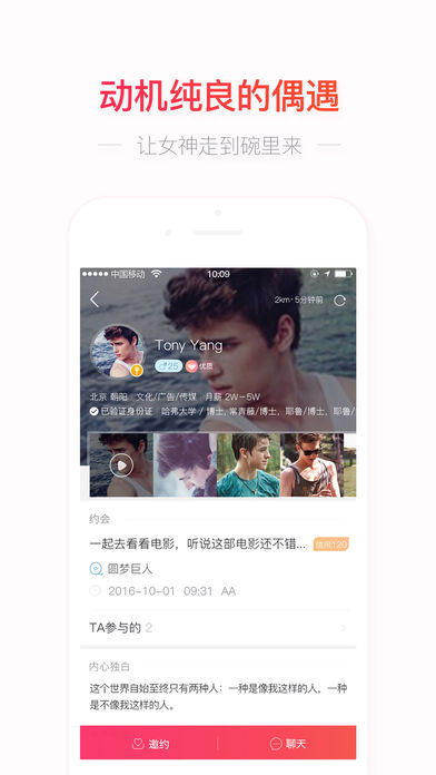 2.免费下载、快速注册、个性推荐、自定义搜索、畅快聊天、创意表白……数百万单身男女的最佳选择!