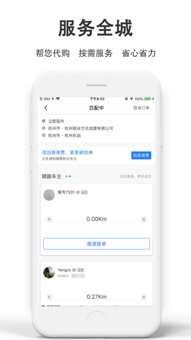 一喂急件苹果版应用,您代购的得力助手。让办事变得轻而易举,专人专车,迅速且安全。如果您有急需之事,快来下载,助您轻松跑腿。