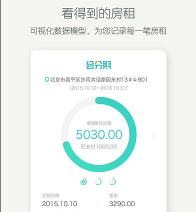 租客在审核通过后,会分期将为租客垫付房租,租客则可实现房租月付,每月在还款日将房租支付给会分期。