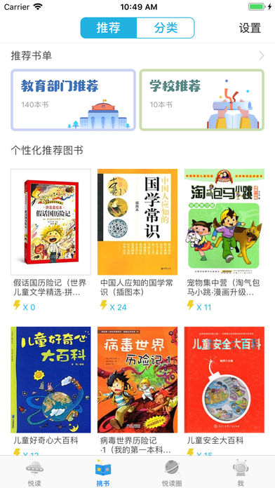 悦读——阅读记录、主题阅读任务及阅读活动挑战的主要入口。