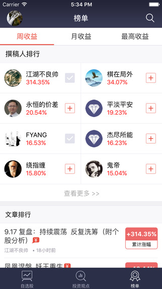 撰稿人的收益排行、文章收益排行按周、月及最高收益清晰呈现,动态更新,助您筛选出真正的投资高手及优质文章。